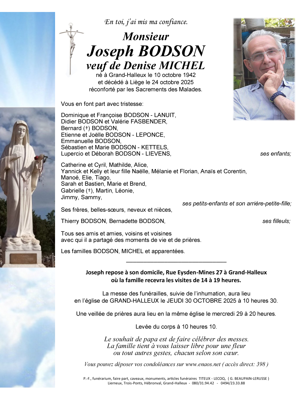 Né à Grand-Halleux (6698, Belgique) le samedi 10 octobre 1942
