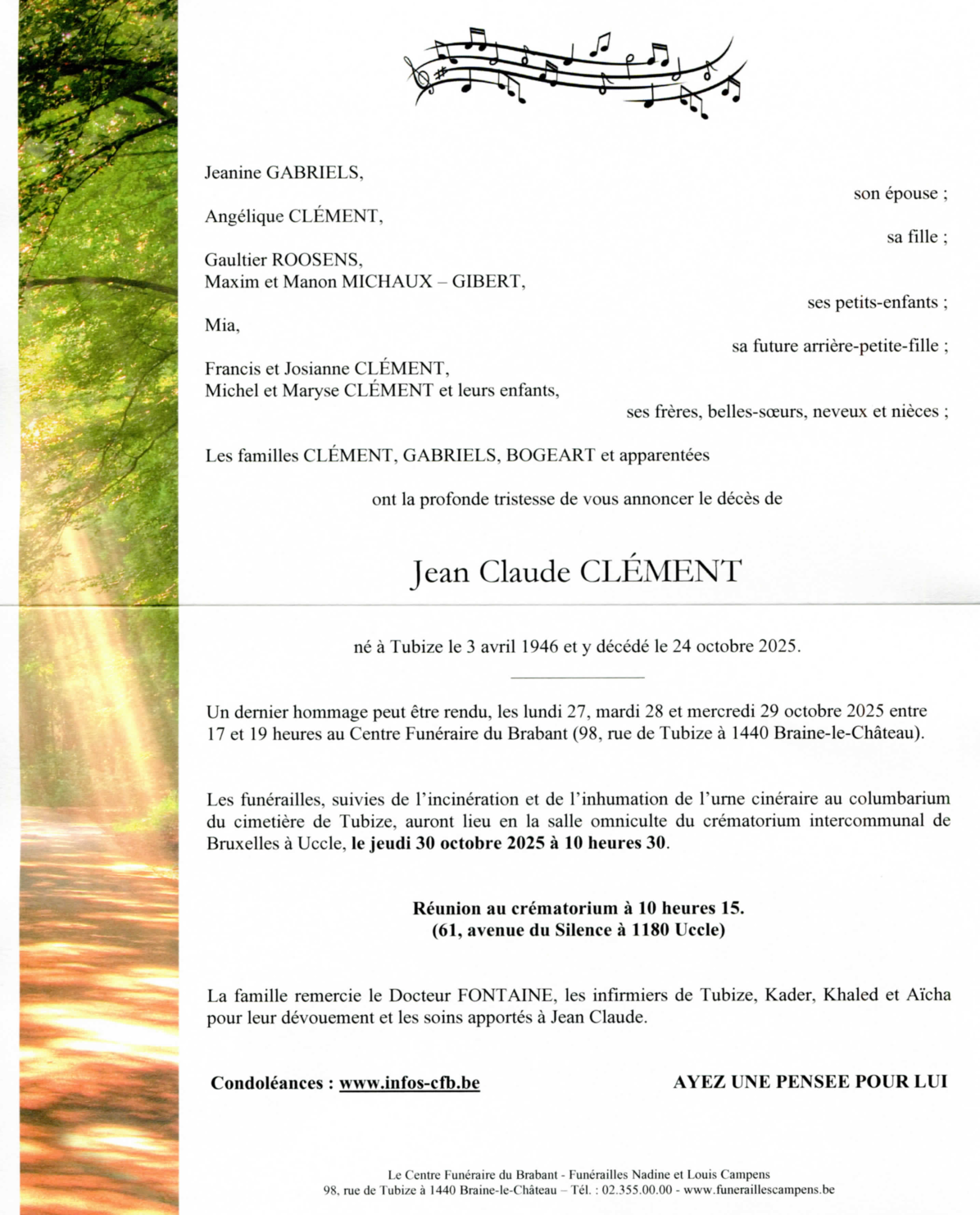 Décédé à Tubize (1480, Belgique) le vendredi 24 octobre 2025 à l'âge de 79 ans