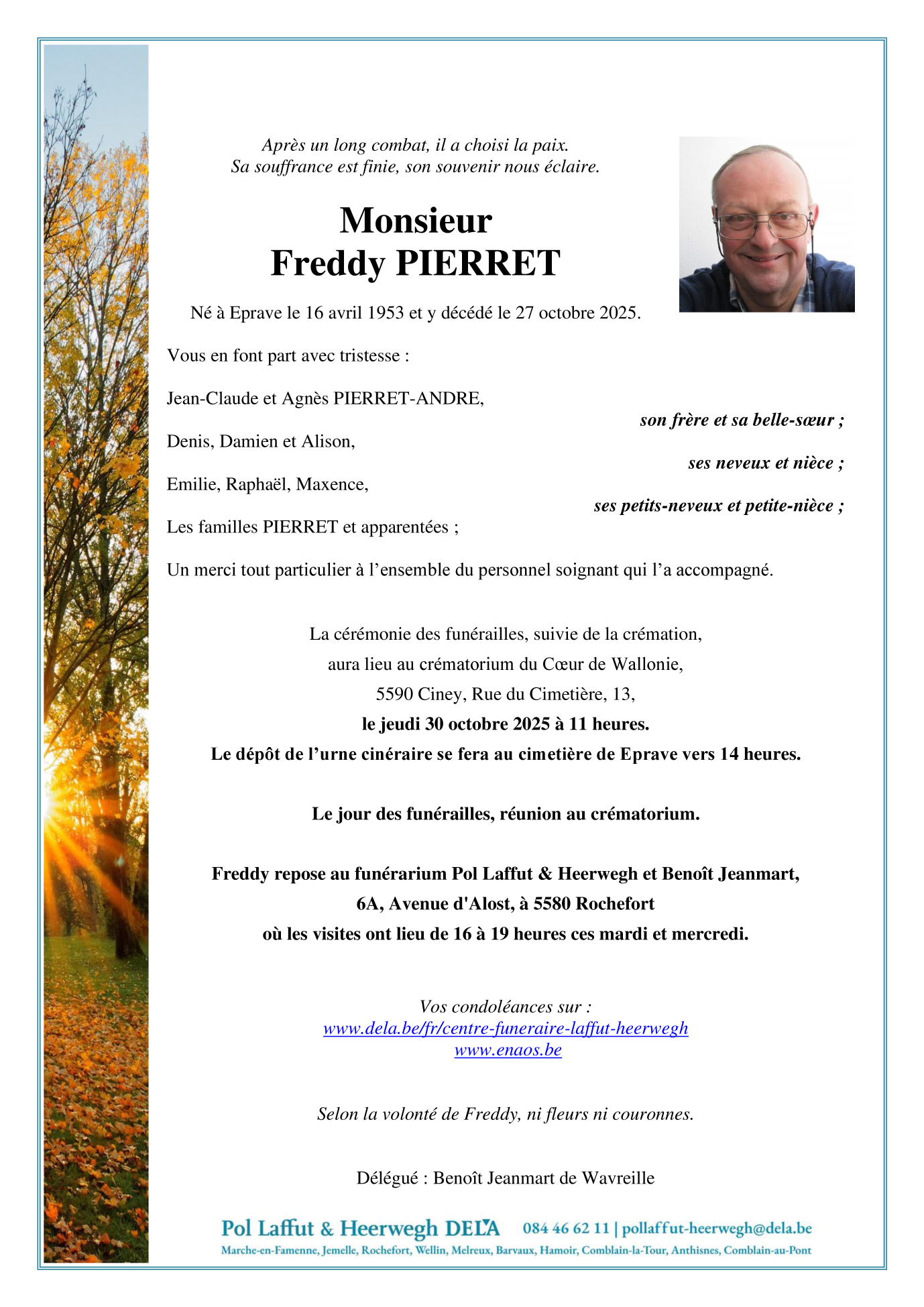 Décédé à Eprave (5580, Belgique) le lundi 27 octobre 2025 à l'âge de 72 ans