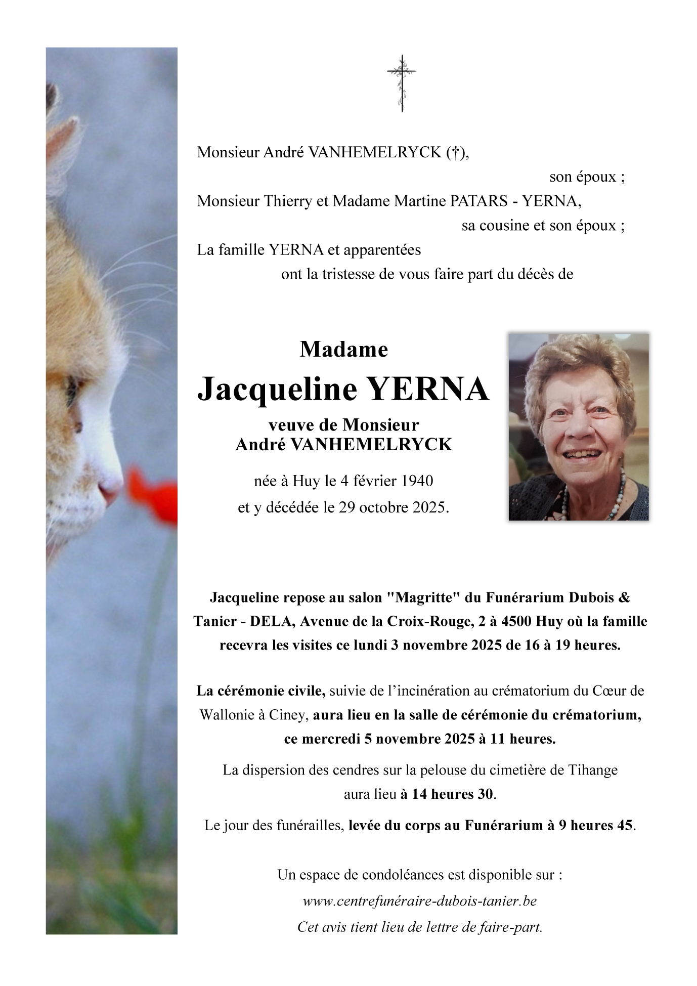 Overleden te Huy (4500, België) op woensdag 29 oktober 2025 op 85-jarige leeftijd