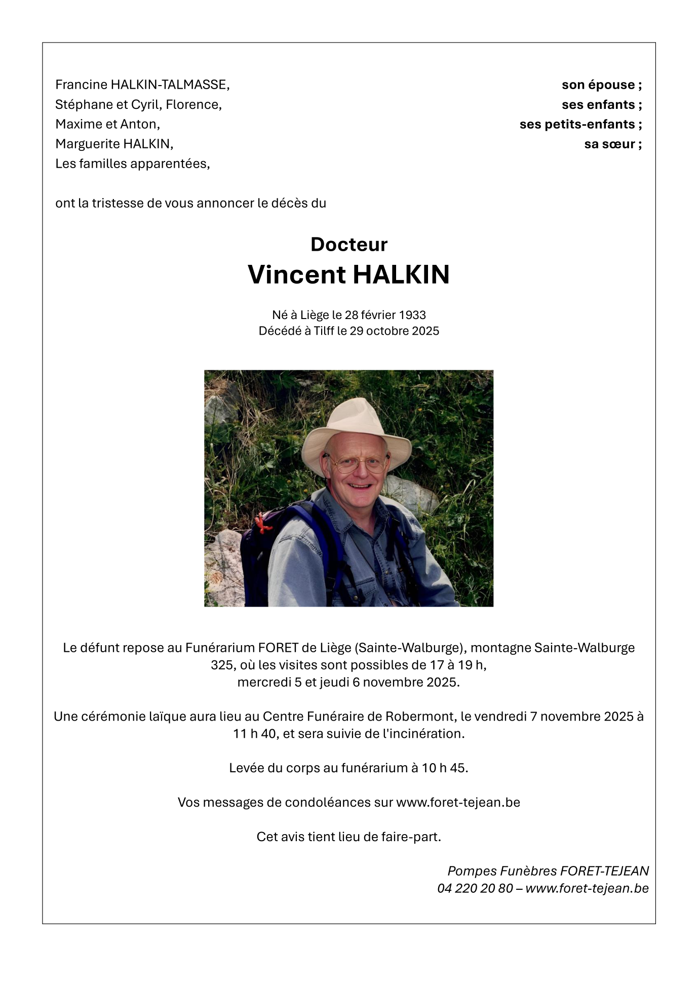 Fallecido en Tilff (4130, Bélgica) el miércoles, 29 de octubre de 2025 a la edad de 92 años