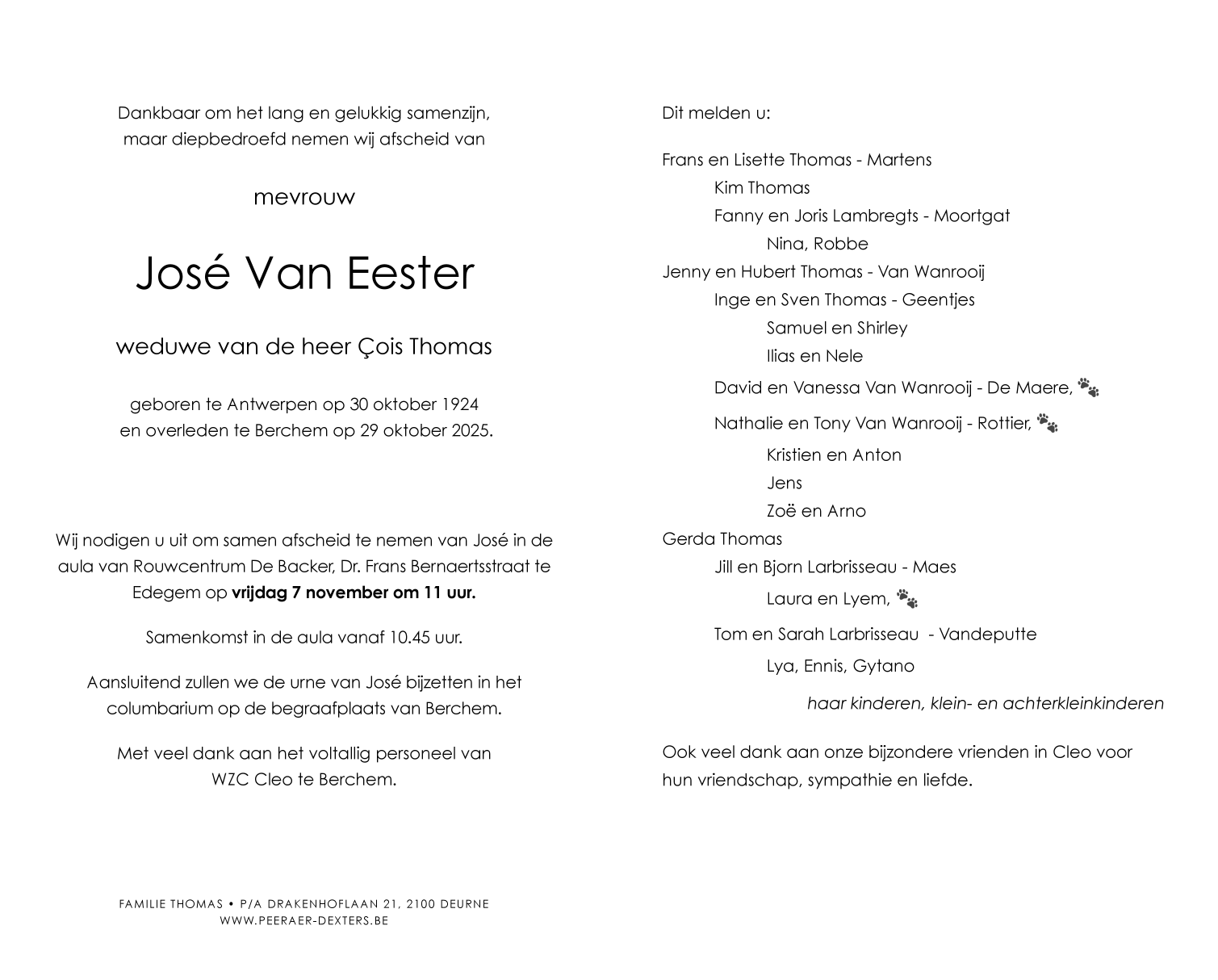 Mevrouw José Van Eester