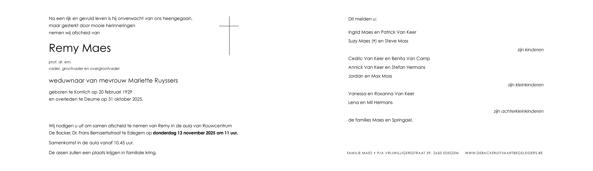 Décédé à Deurne (Antwerpen) (2100, Belgique) le vendredi 31 octobre 2025 à l'âge de 96 ans