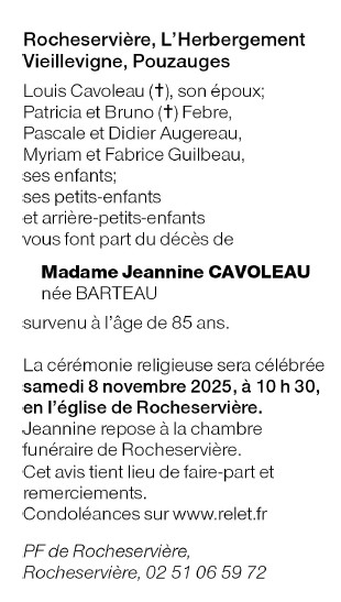 Décédée à Montaigu (85600) le mercredi 5 novembre 2025 à l'âge de 85 ans