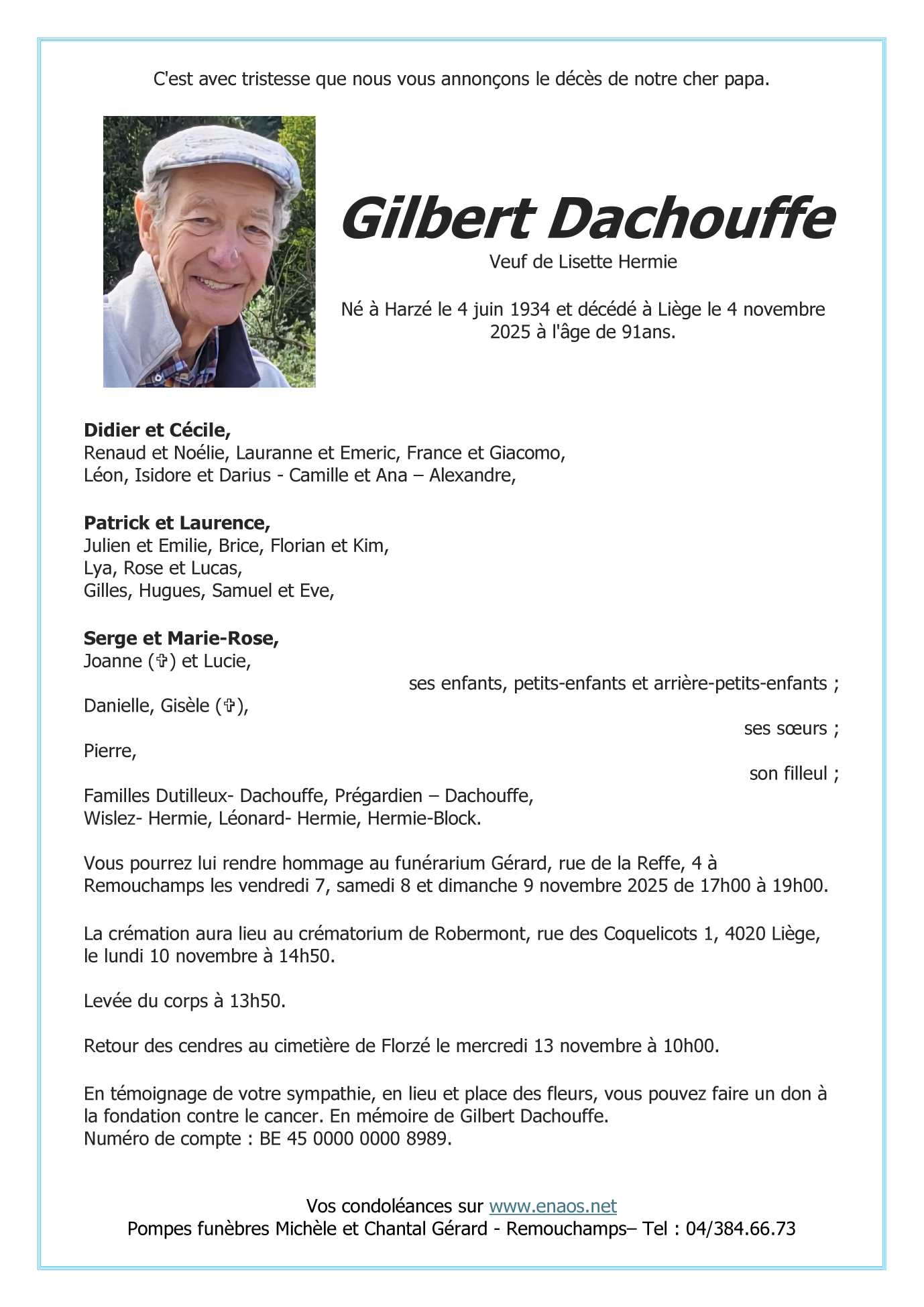 Décédé à Liège (4000, Belgique) le mardi 4 novembre 2025 à l'âge de 91 ans