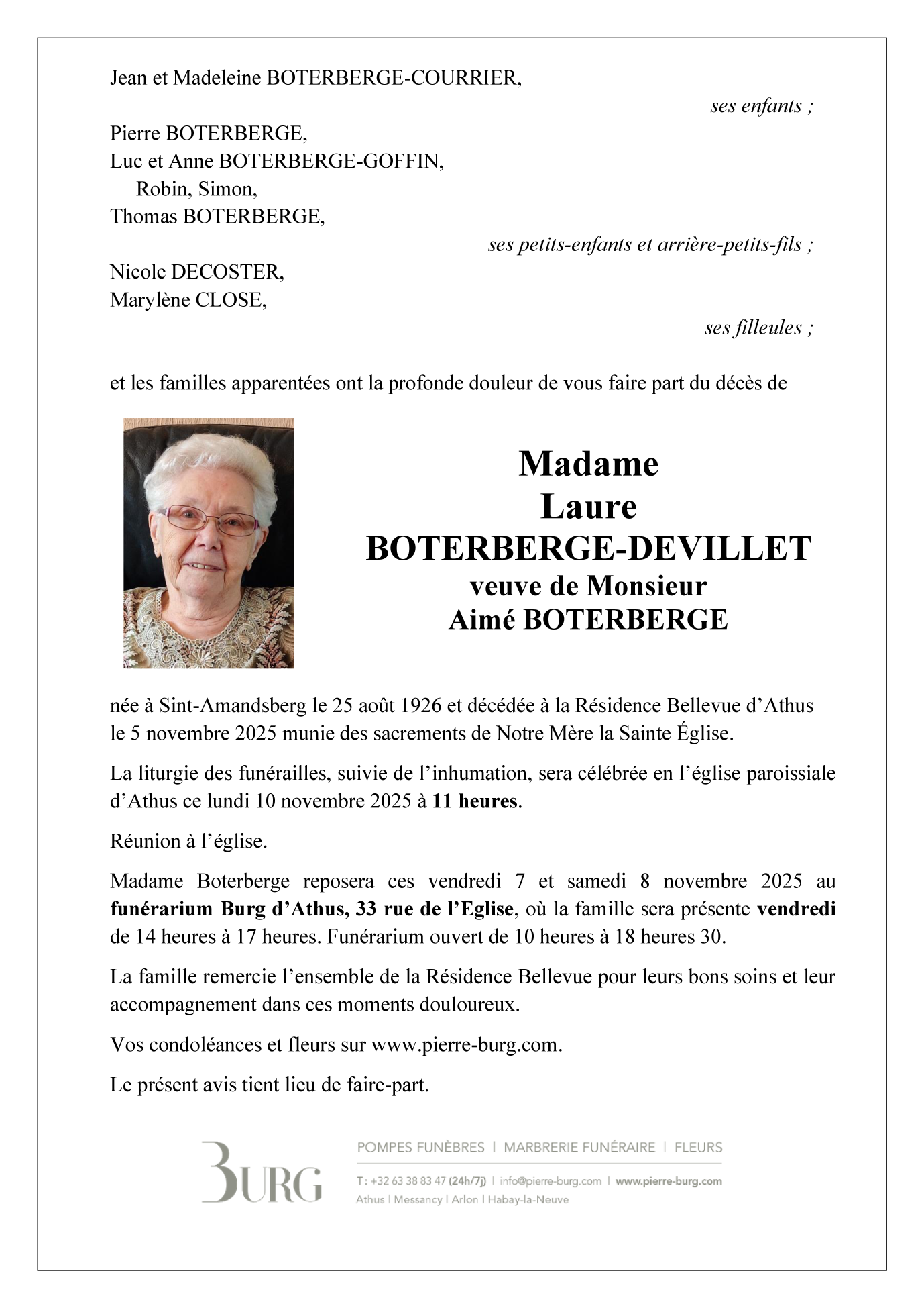 Décédée à Athus (6791, Belgique) le mercredi 5 novembre 2025 à l'âge de 99 ans