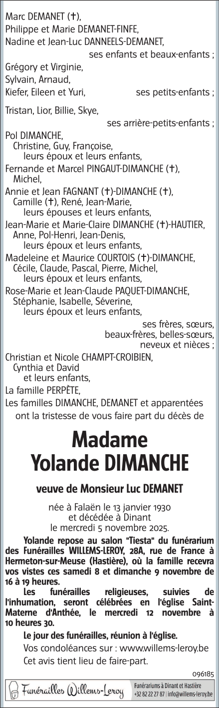 Décédée à Dinant (5500, Belgique) le mercredi 5 novembre 2025 à l'âge de 95 ans