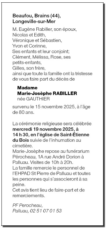 Madame Marie-Josèphe RABILLER née GAUTHIER