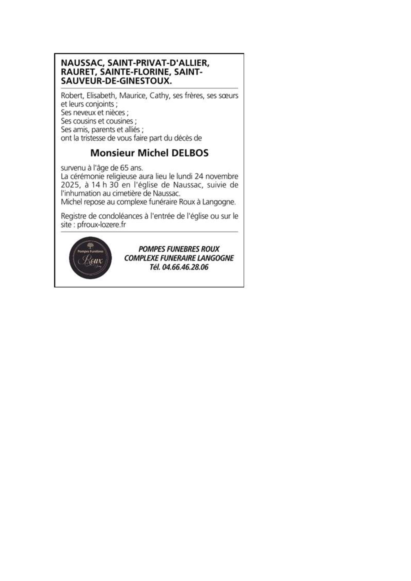 Décédé à Langeac (43300) le lundi 17 novembre 2025 à l'âge de 65 ans