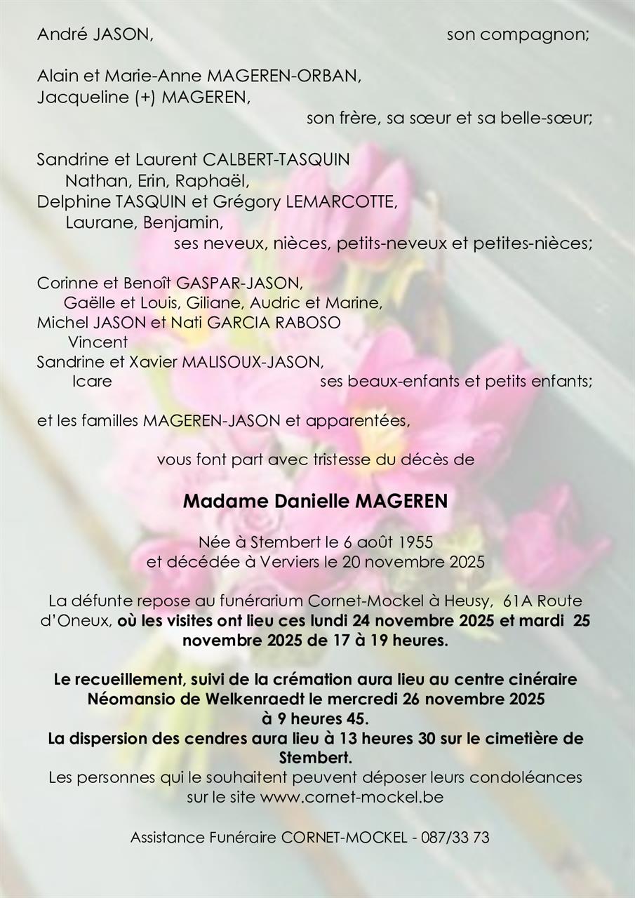 Décédée à Verviers (4800, Belgique) le jeudi 20 novembre 2025 à l'âge de 70 ans