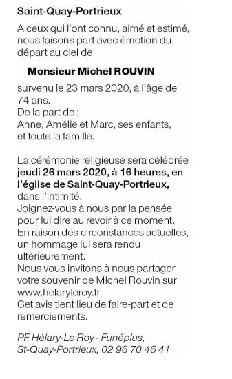Fallecido en Plérin (22190) el lunes, 23 de marzo de 2020 a la edad de 74 años