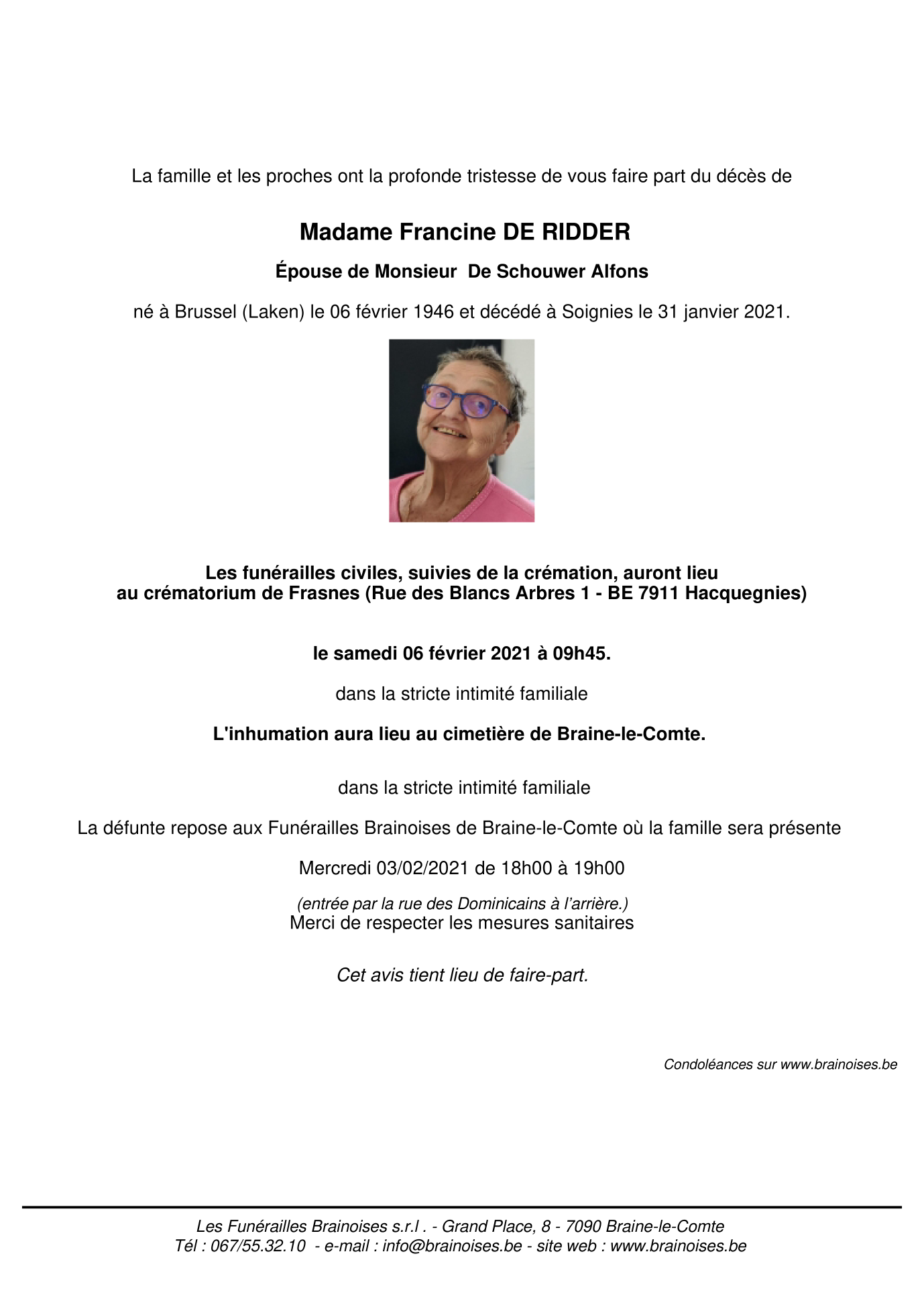 Fallecido en Soignies (7060, Bélgica) el domingo, 31 de enero de 2021 a la edad de 74 años