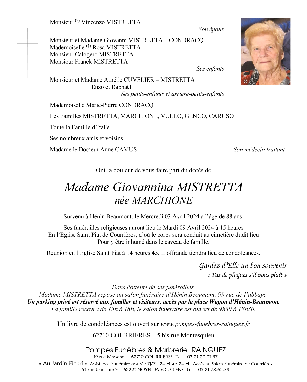 Veuve de Monsieur Vicenzo MISTRETTA