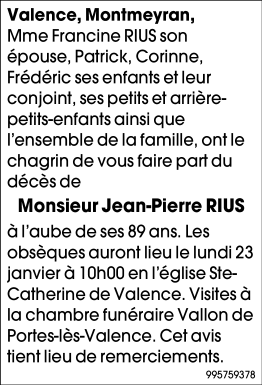 Décédé à Valence (26000) le mercredi 18 janvier 2023 à l'âge de 88 ans