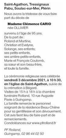 Fallecida en Saint-Agathon (22200) el lunes, 29 de noviembre de 2021 a la edad de 95 años