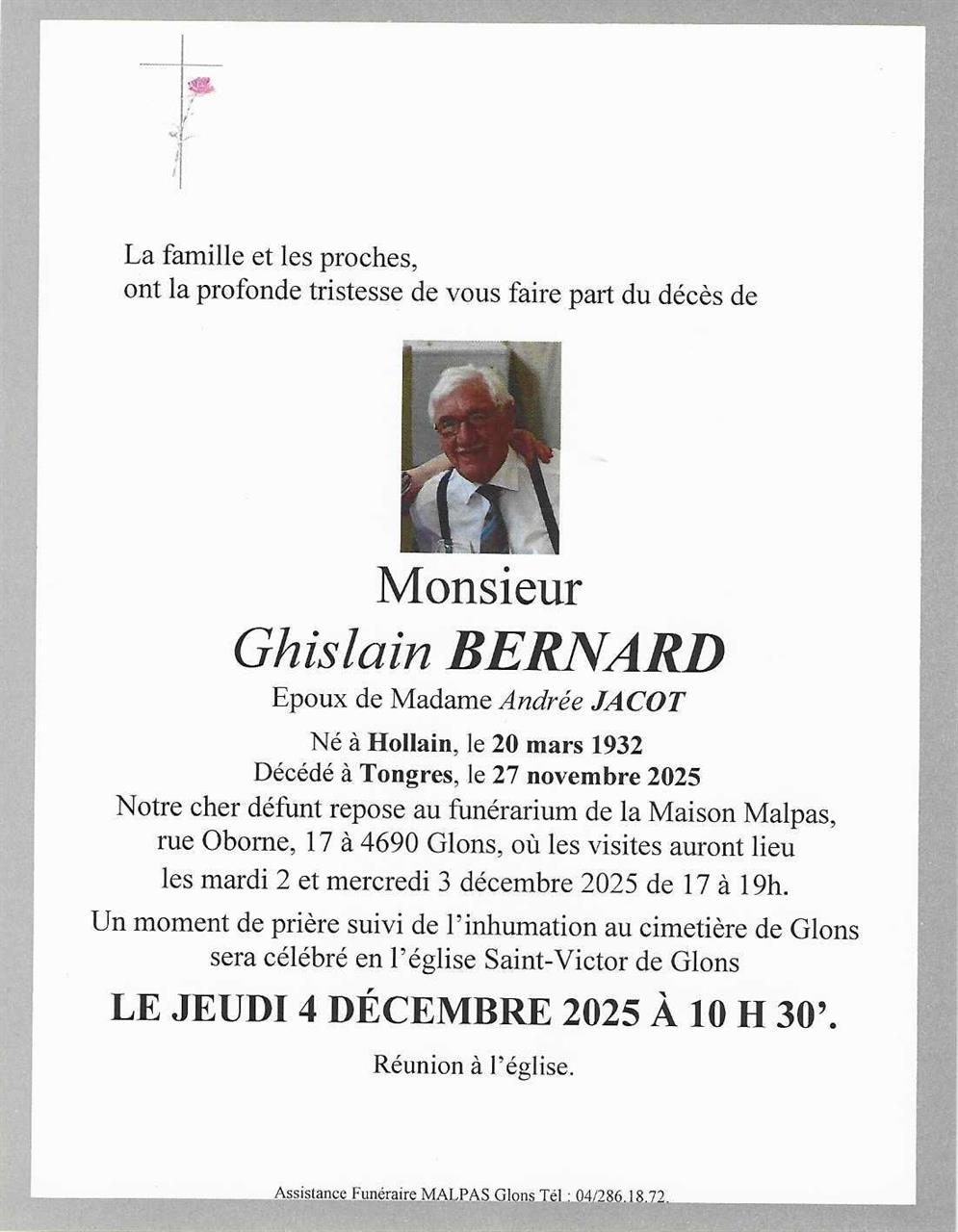 Décédé à Tongeren (3700, Belgique) le jeudi 27 novembre 2025 à l'âge de 93 ans