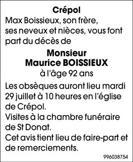 Décédé à Romans-sur-Isère (26100) le vendredi 25 juillet 2025 à l'âge de 92 ans