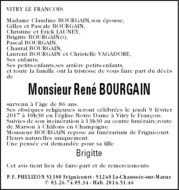 Overleden te Saint-Dizier (52100) op zondag 5 februari 2017 op 86-jarige leeftijd