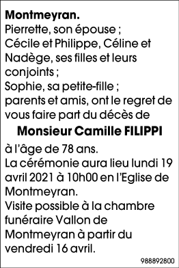 Fallecido en Valence (26000) el jueves, 8 de abril de 2021 a la edad de 78 años