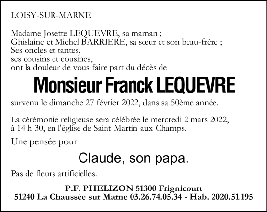 Fallecido en Loisy-sur-Marne (51300) el domingo, 27 de febrero de 2022 a la edad de 49 años