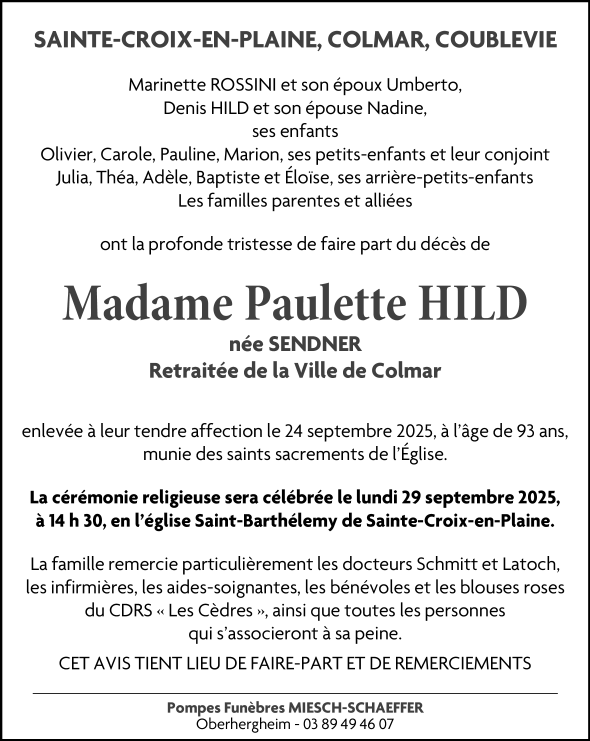 Fallecida en Colmar (68000) el miércoles, 24 de septiembre de 2025 a la edad de 93 años