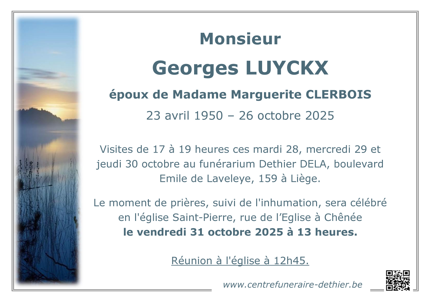Décédé à Embourg (4053, Belgique) le dimanche 26 octobre 2025 à l'âge de 75 ans