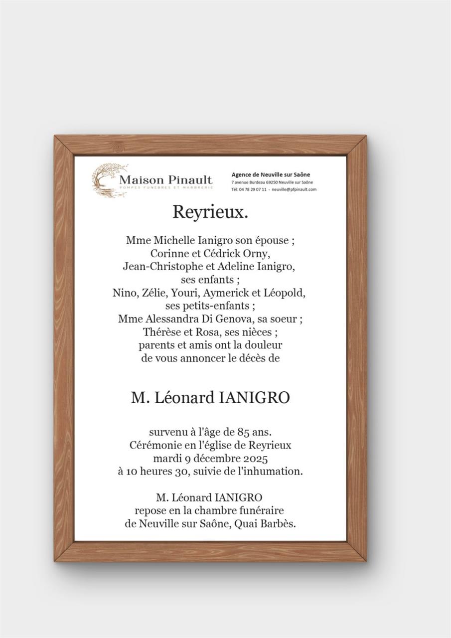 Décédé à Reyrieux (01600) le jeudi 4 décembre 2025 à l'âge de 85 ans