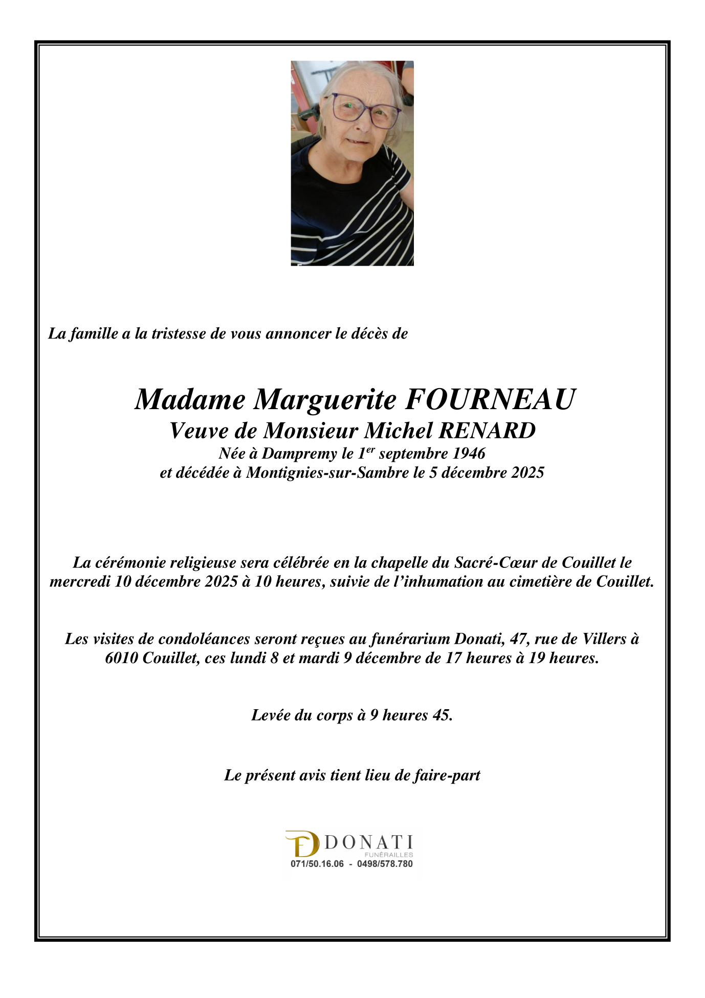 Décédée à Montignies-sur-Sambre (6061, Belgique) le vendredi 5 décembre 2025 à l'âge de 79 ans
