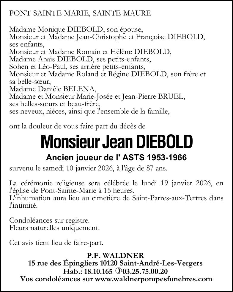 Décédé à Saint-Parres-aux-Tertres (10410) le samedi 10 janvier 2026 à l'âge de 87 ans
