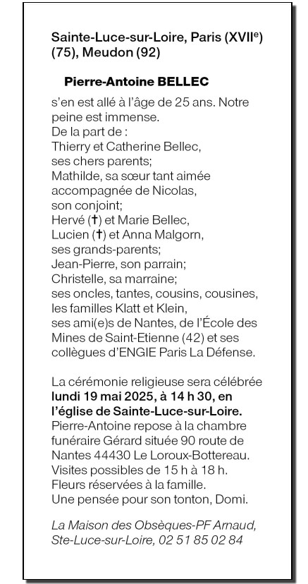 Décédé à Paris (75017) le mercredi 23 avril 2025 à l'âge de 25 ans