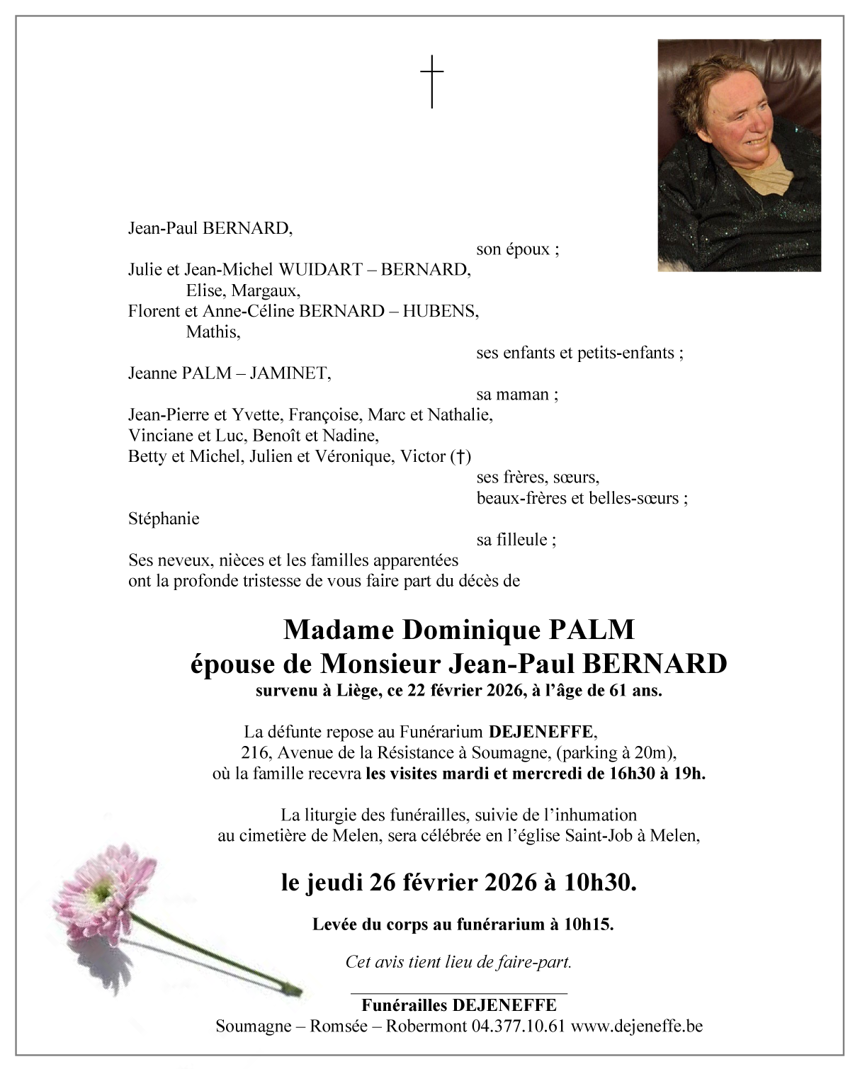 Overleden te Liège (4000, België) op zondag 22 februari 2026 op 61-jarige leeftijd