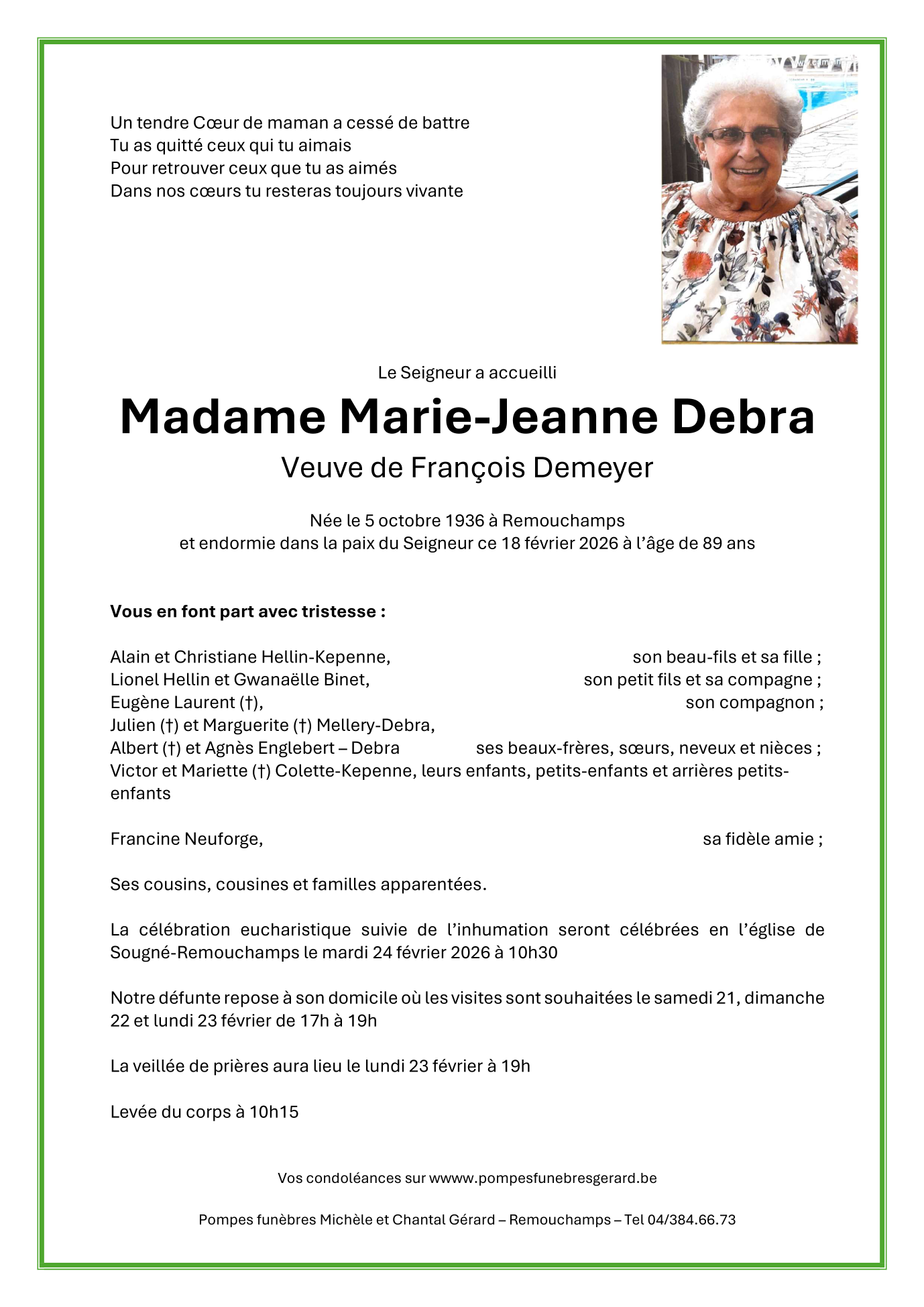 Madame Marie-Jeanne DEBRA