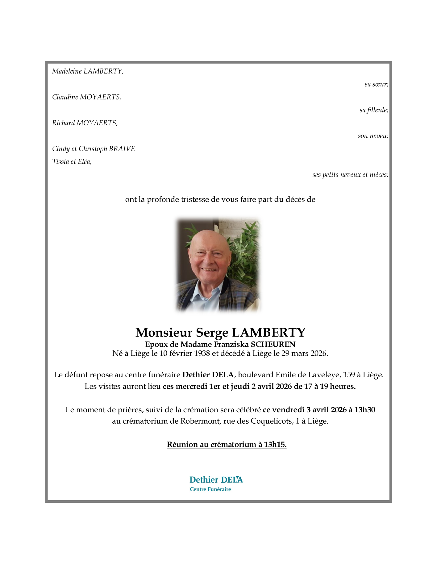 Died in Liège (4000, Belgium) on 29 March 2026 at the age of 88 years