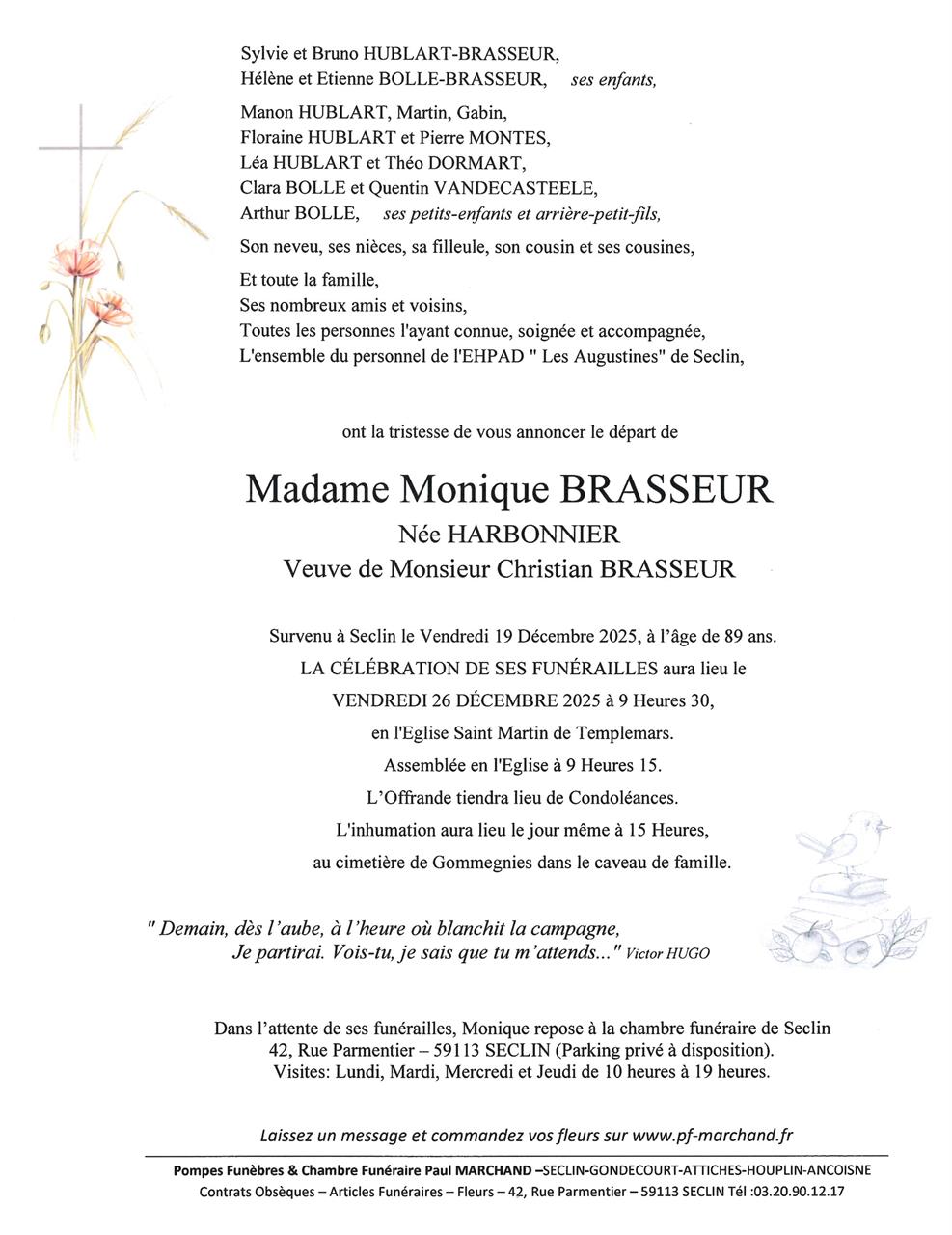 Veuve de Monsieur Christian BRASSEUR