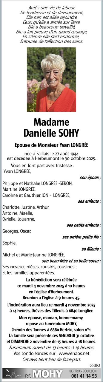 Fallecida en Herbeumont (6887, Bélgica) el jueves, 30 de octubre de 2025 a la edad de 81 años