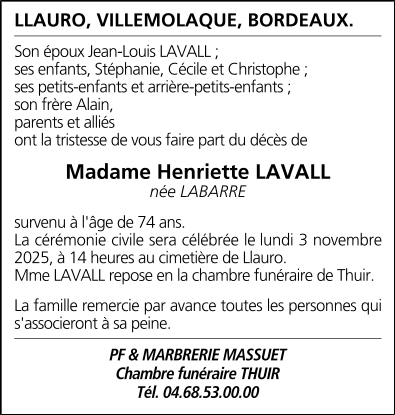 Madame Henriette LAVALL née LABARRE