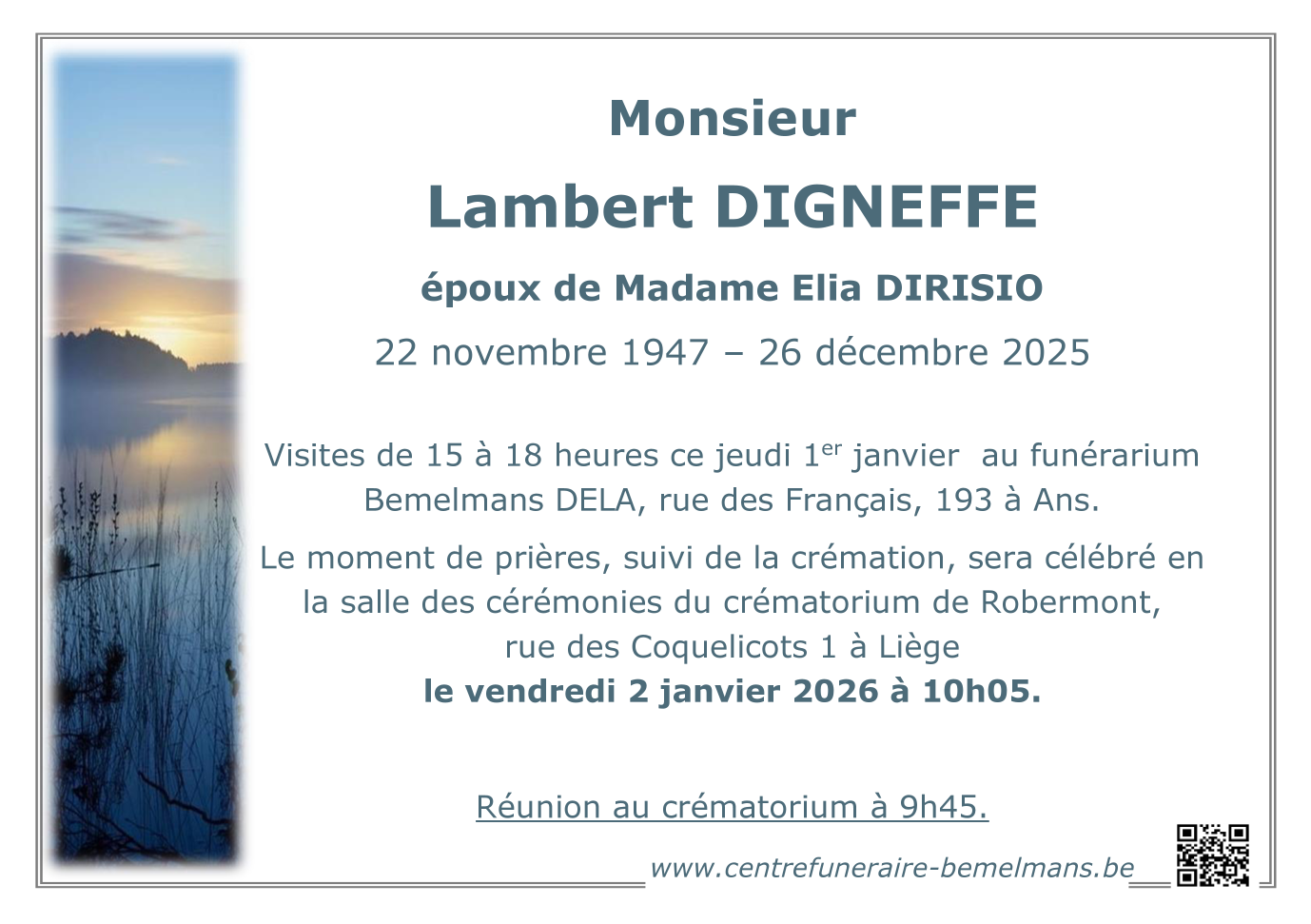 Décédé à Liège (4000, Belgique) le vendredi 26 décembre 2025 à l'âge de 78 ans