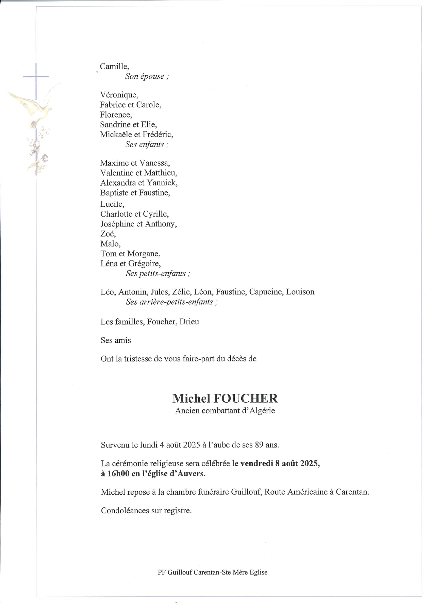 Décédé à Saint-Lô (50000) le lundi 4 août 2025 à l'âge de 88 ans