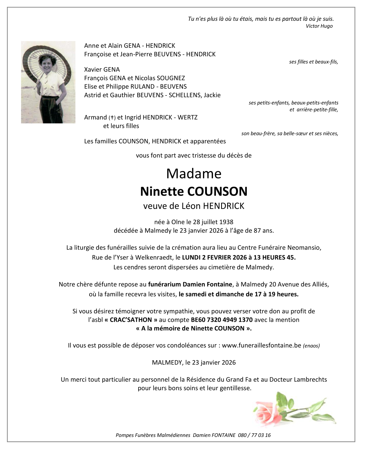 Died in Malmedy (4960, Belgium) on 23 January 2026 at the age of 87 years