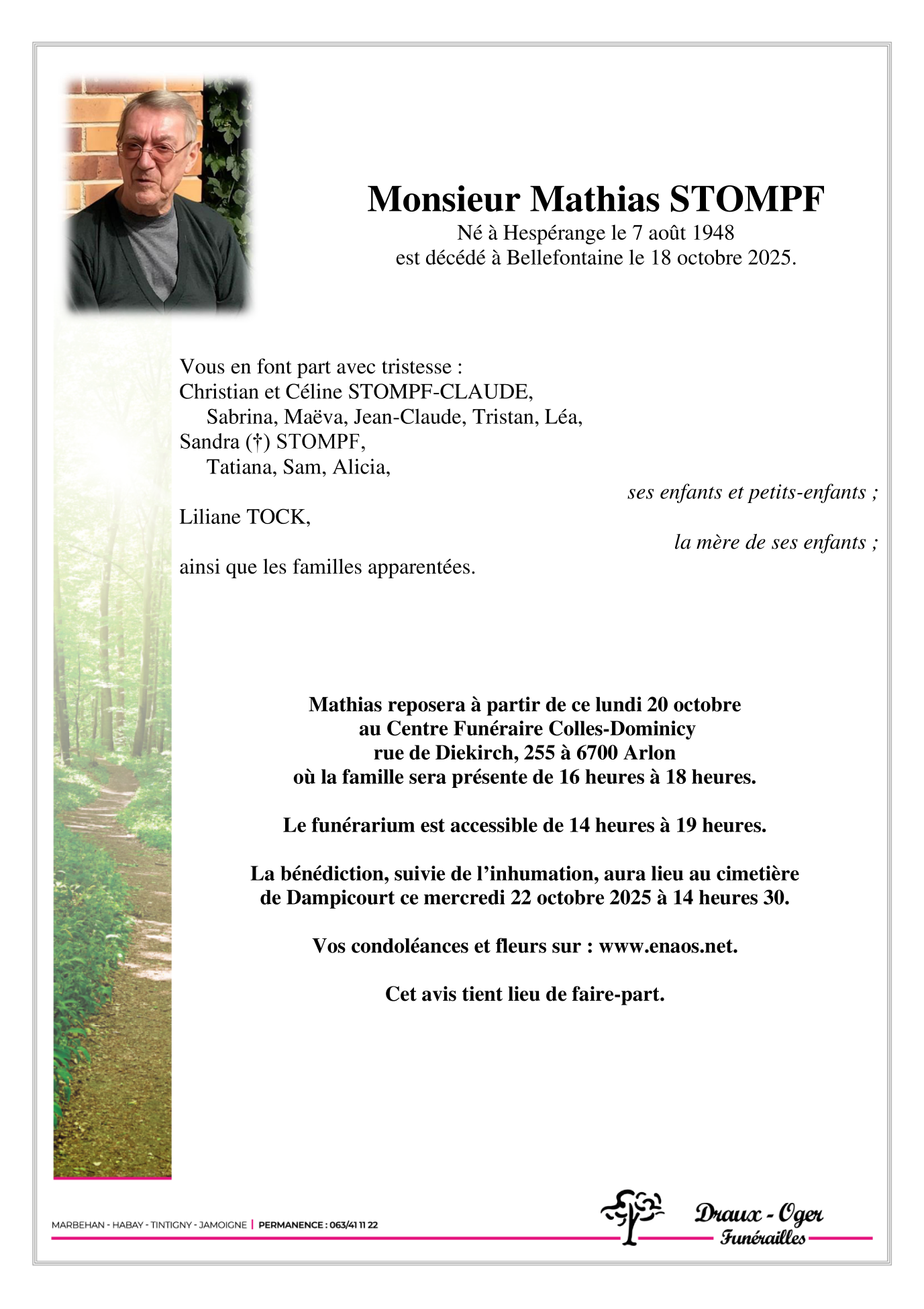 Overleden te Bellefontaine (Lux.) (6730, België) op zaterdag 18 oktober 2025 op 77-jarige leeftijd