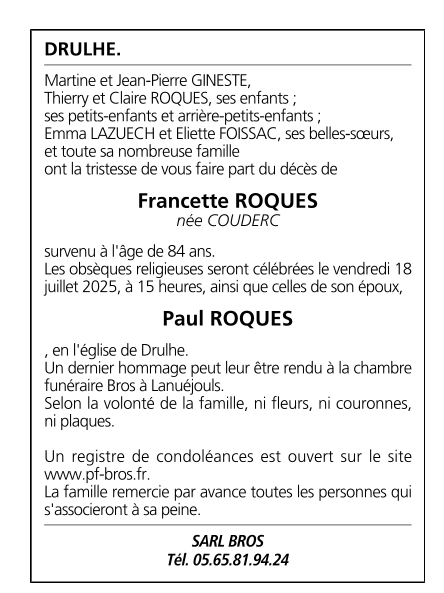 Fallecida en Pibrac (31820) el martes, 15 de julio de 2025 a la edad de 84 años
