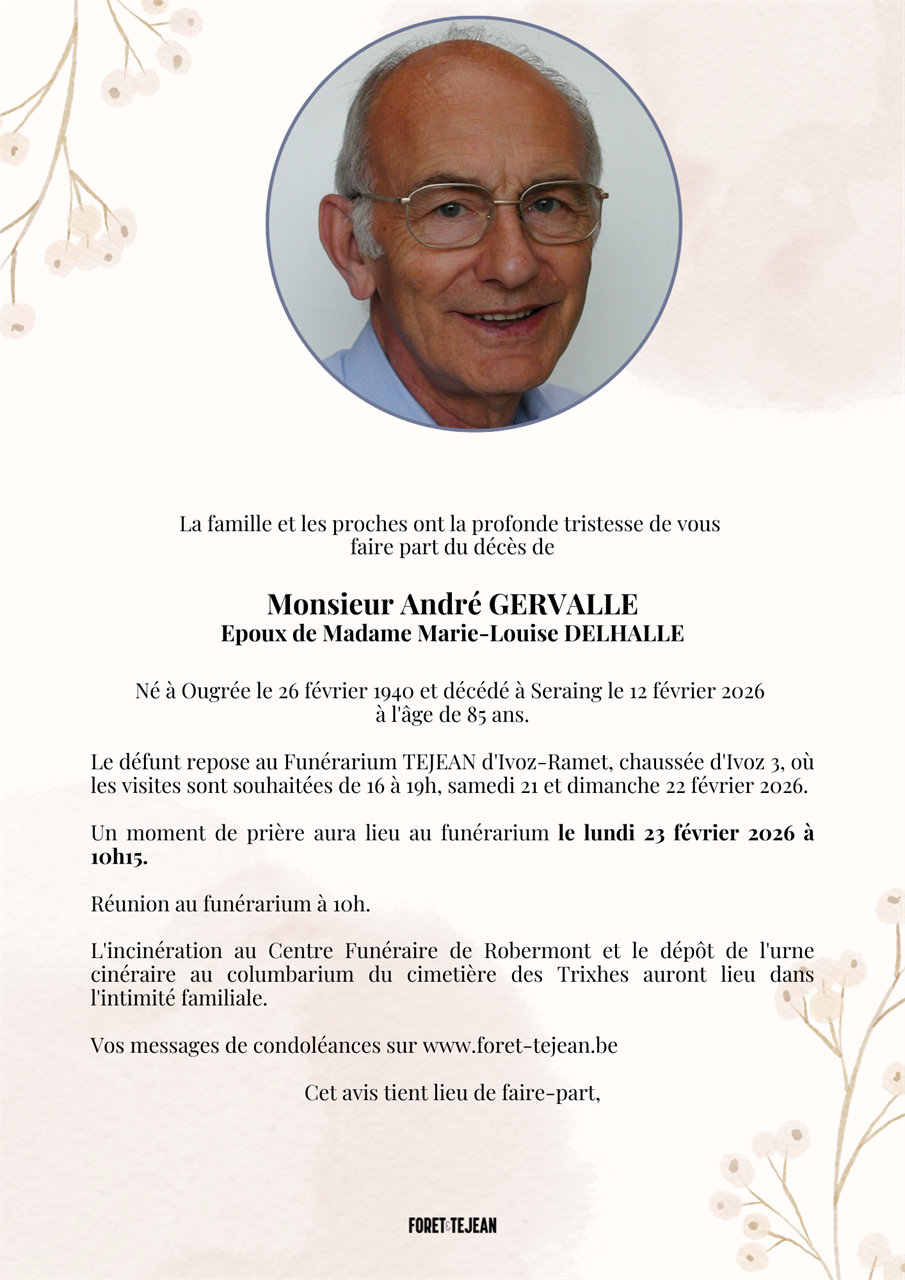 Fallecido en Seraing (4100, Bélgica) el jueves, 12 de febrero de 2026 a la edad de 85 años