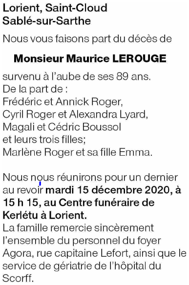 Overleden te Lorient (56100) op vrijdag 11 december 2020 op 88-jarige leeftijd