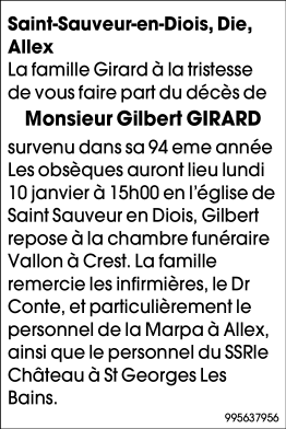 Décédé à Saint-Georges-les-Bains (07800) le jeudi 6 janvier 2022 à l'âge de 93 ans