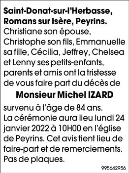Fallecido en Valence (26000) el martes, 18 de enero de 2022 a la edad de 84 años
