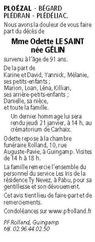 Madame Odette LE SAINT née GELIN
