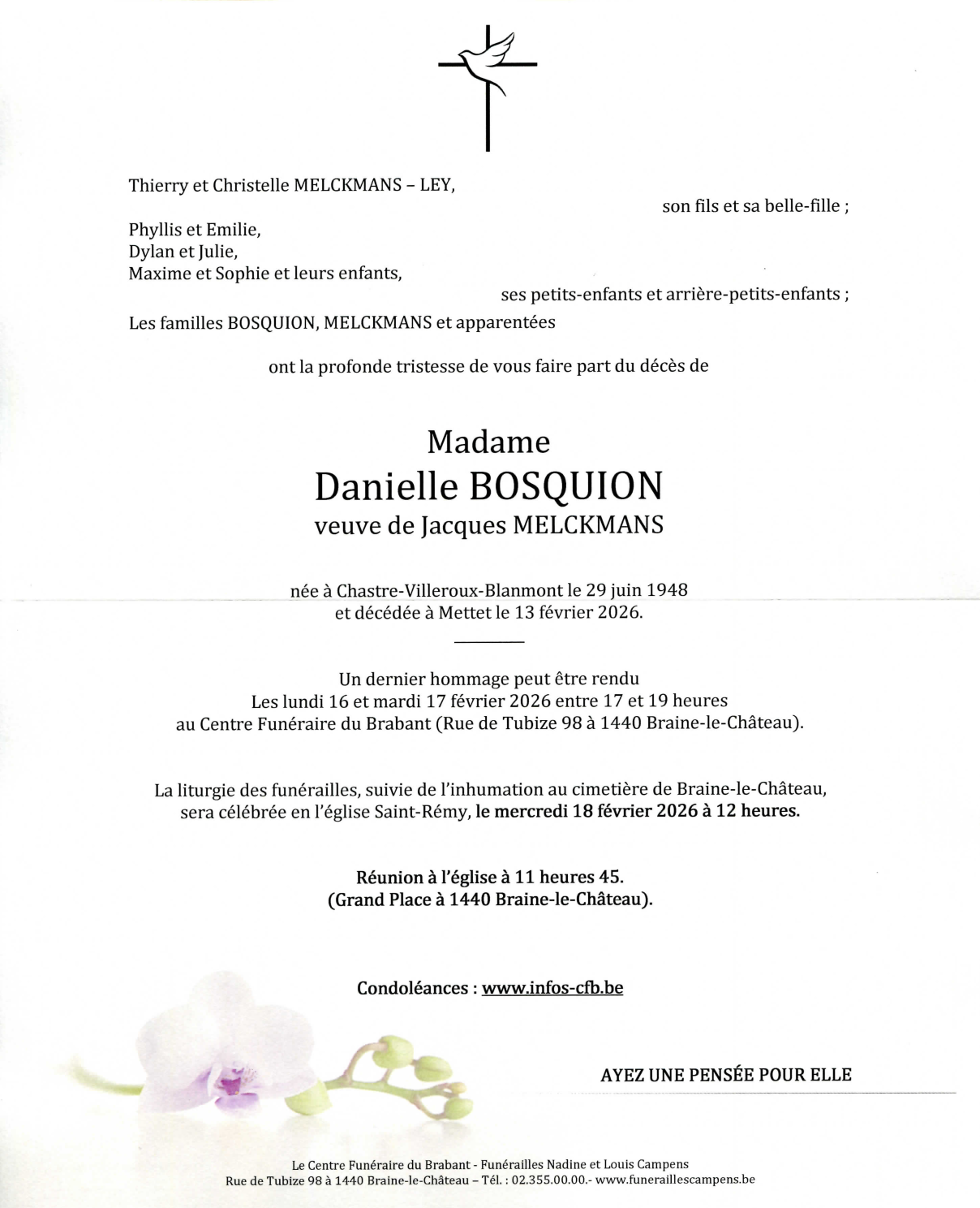 Died in Mettet (5640, Belgium) on 13 February 2026 at the age of 77 years