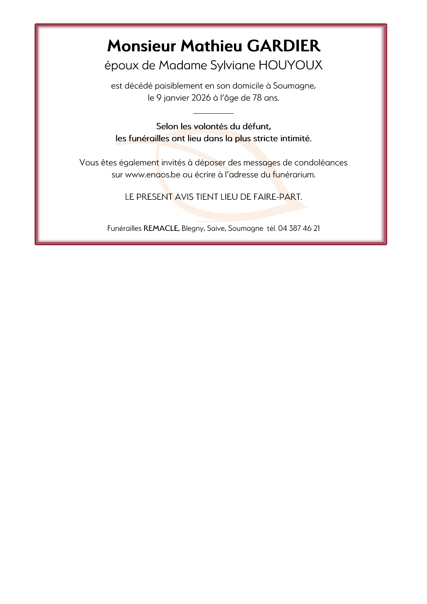 Décédé à Soumagne (4630, Belgique) le vendredi 9 janvier 2026 à l'âge de 78 ans