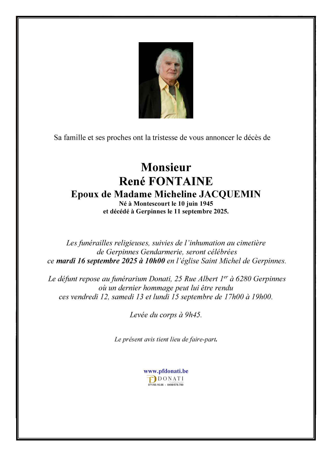 Décédé à Gerpinnes (6280, Belgique) le jeudi 11 septembre 2025 à l'âge de 80 ans