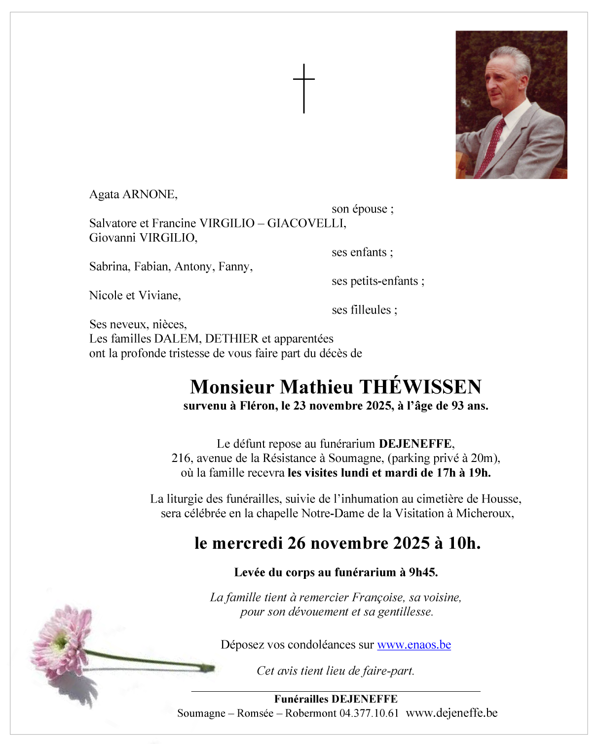 Fallecido en Fléron (4620, Bélgica) el domingo, 23 de noviembre de 2025 a la edad de 93 años